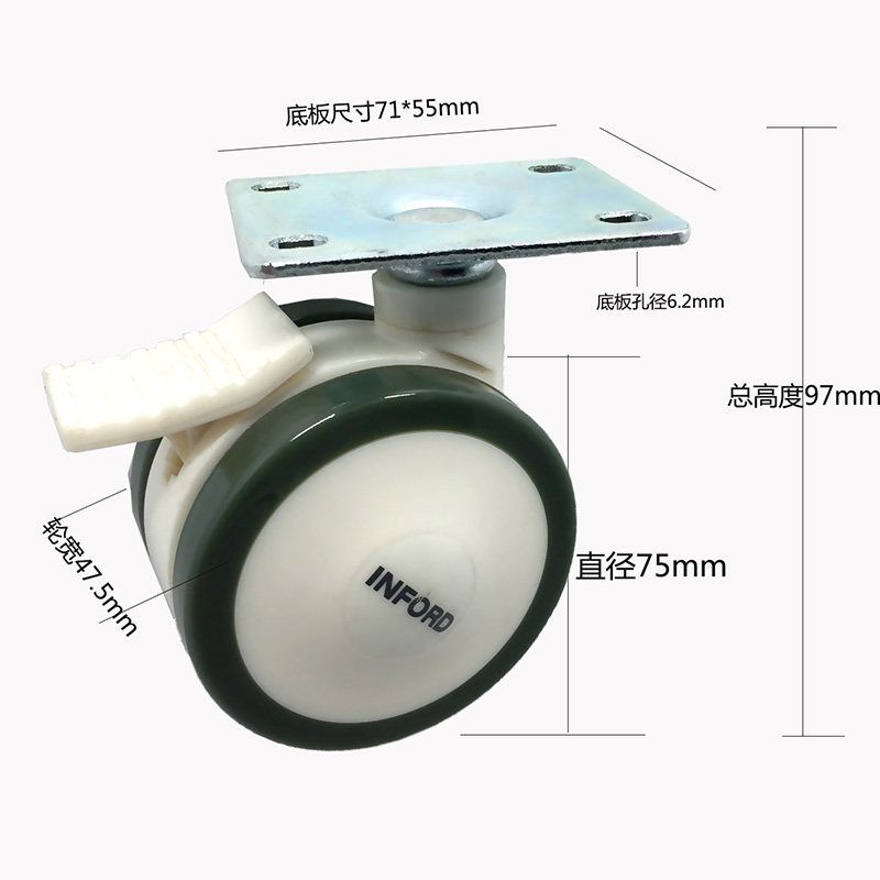 3寸万向轮脚轮医疗器械轻便静音轮轮子刹车轮超耐磨医用正品盈禾 - 永程五金