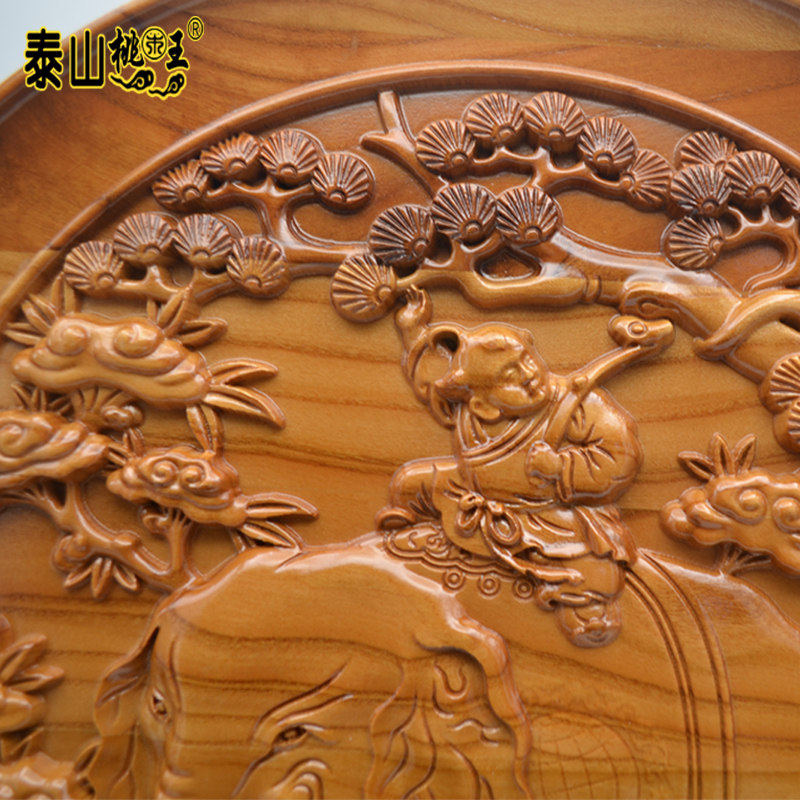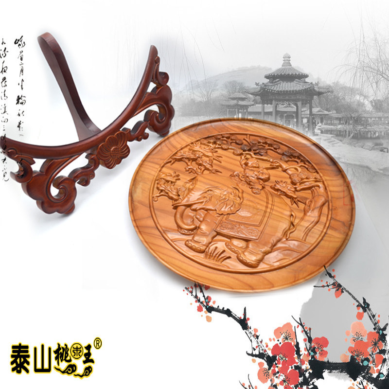 桃木王桃木木雕看盘 精雕大象 吉祥如意吉象如意家居饰品摆件 - 泰山桃木王