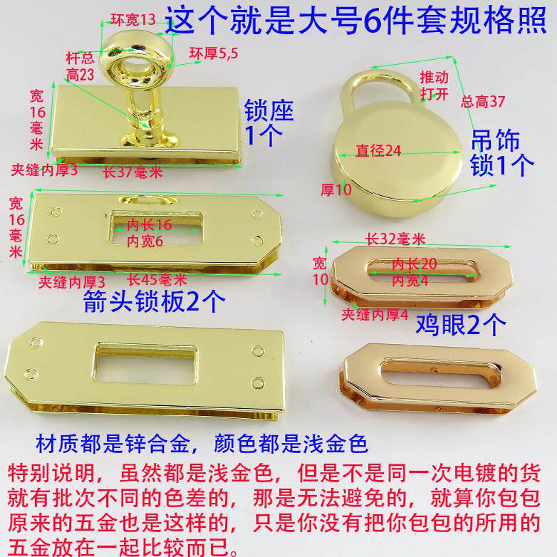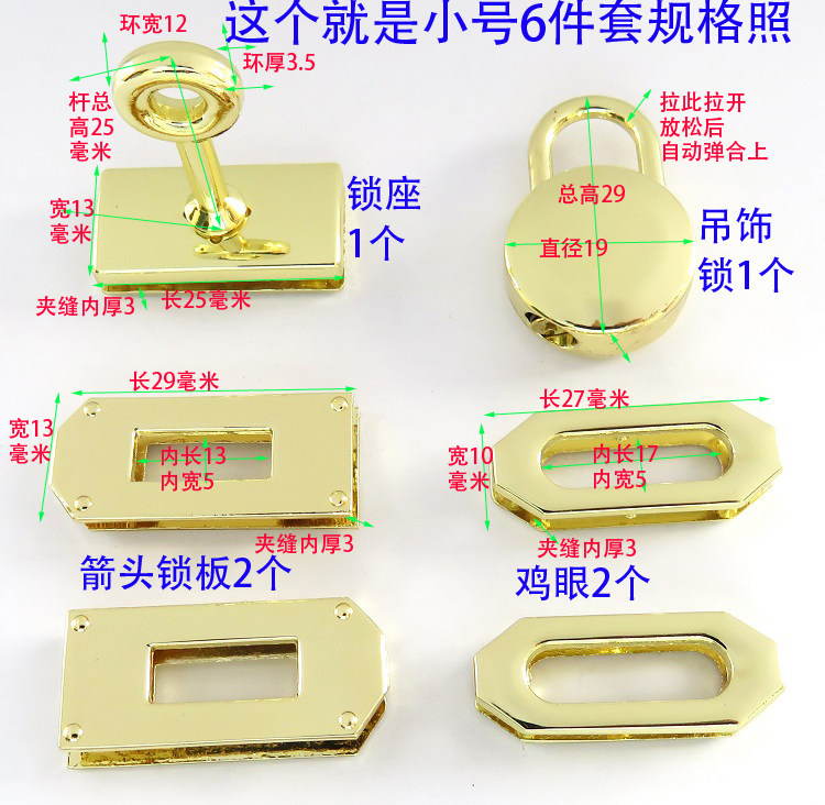 您的位置:女淘日记  >  箱包  >  女箱包斜挎包五金配件方头尖锁板座拧圆环吊饰圆锁鸡眼扣铂金凯莉