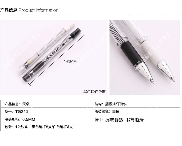 包邮天卓中性笔0.5 12支/盒 办公用创意纹黑色笔芯签字笔水笔 - 文艺轩阁