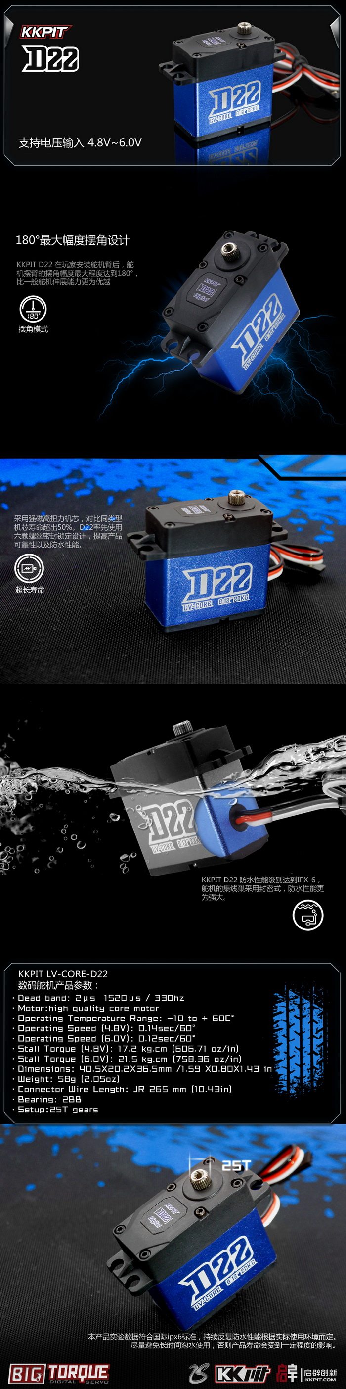 KKPIT D22 金属齿潜水舵机 22KG 大扭力防水舵机 180度舵机 - 苏乐快捷模型