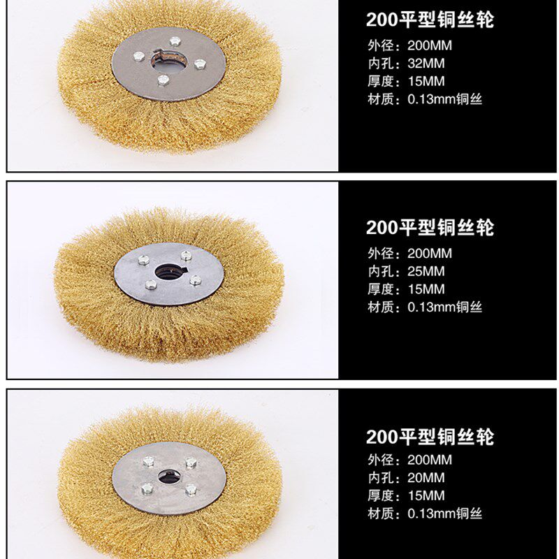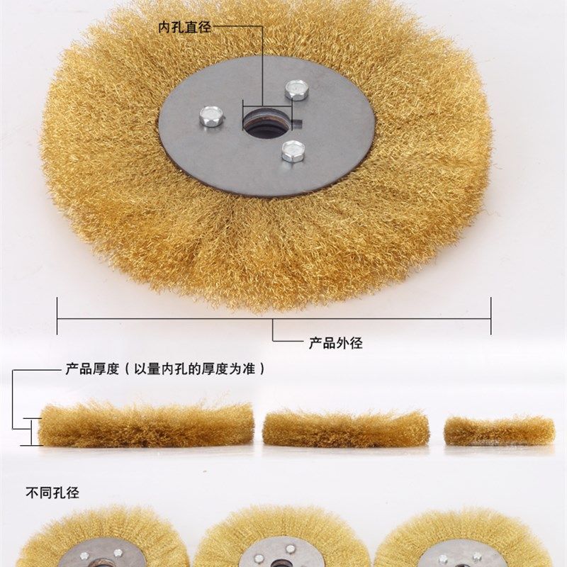 九龙平型铜丝轮 平行铜丝刷子金属打磨除锈砂轮机用不锈钢抛光轮