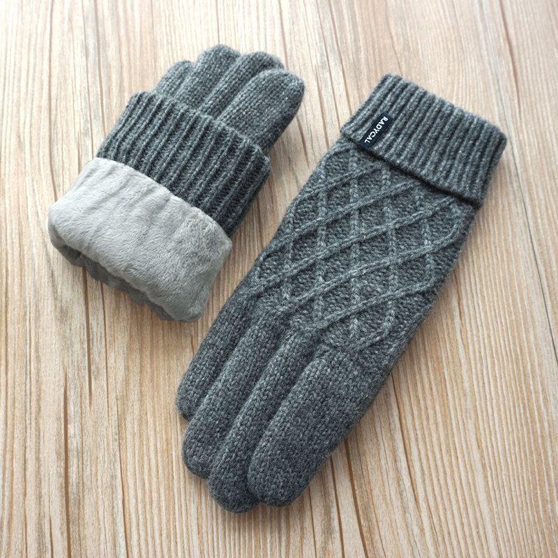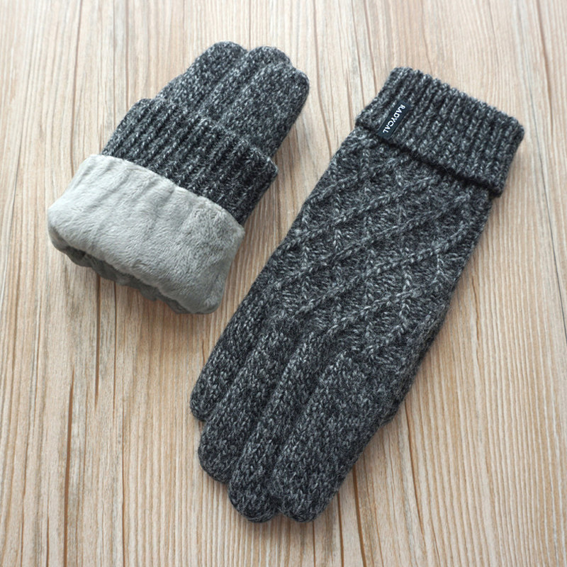 瑞迪卡欧男秋冬拧花双层加绒加厚羊毛线针织户外保暖触屏防寒手套 - 欧伊莱米服饰