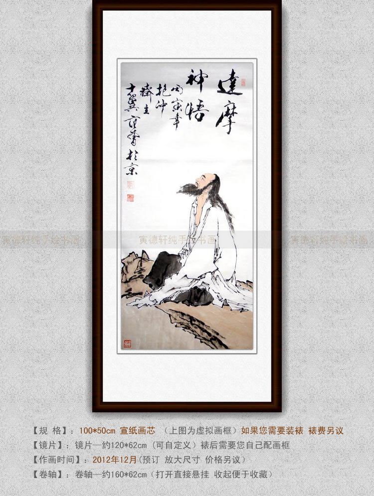 纯手绘国画仿名人字画名家书画范曾竖条幅白描达摩神悟图人物挂画 - 纯手绘书画折扣店