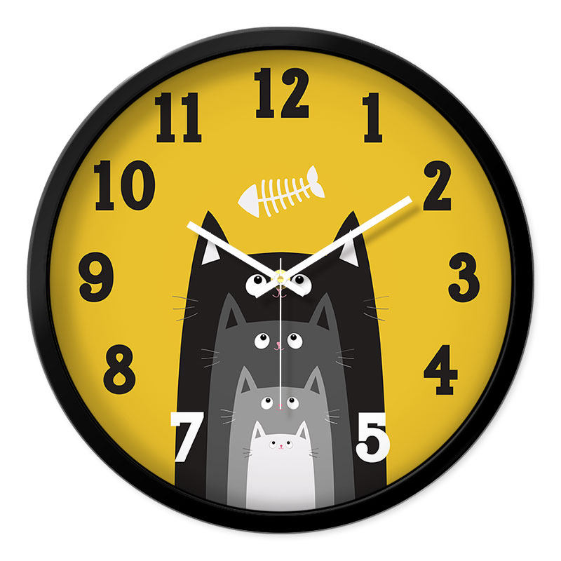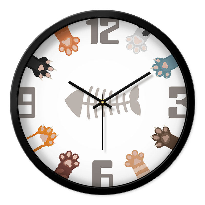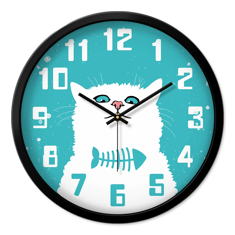 MOMEN/摩门挂钟可爱小猫cat卡通时钟儿童房间静音客厅石英钟表 - 海陆风潮流精选店