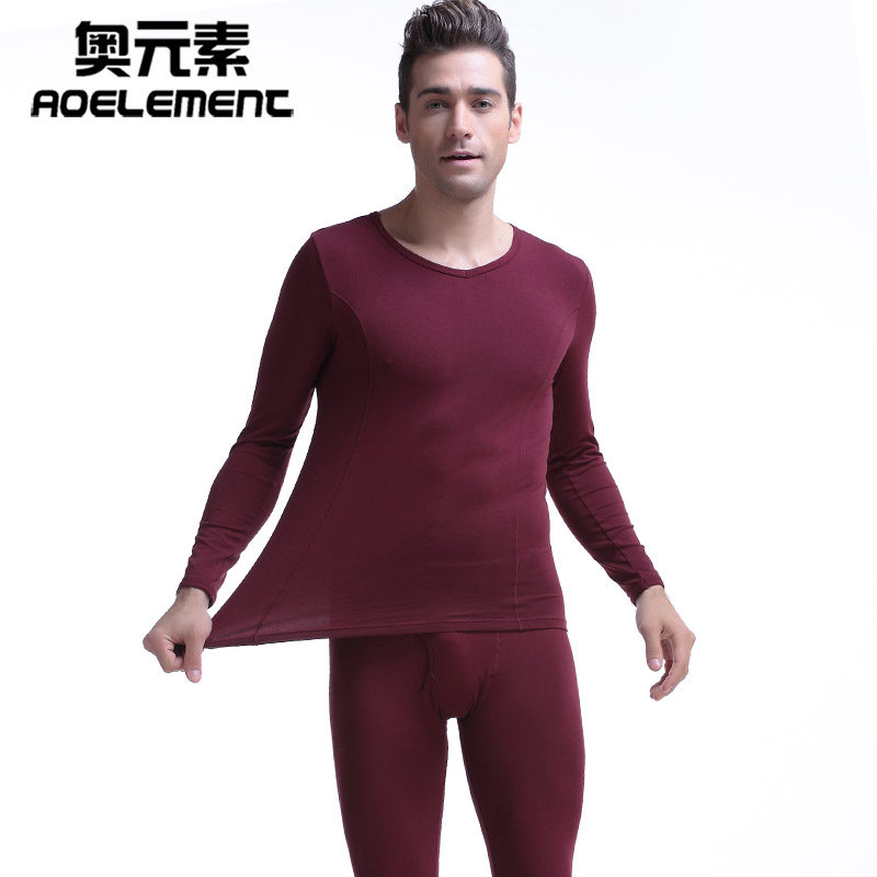 基础男士保暖内衣套装秋衣秋裤薄款紧身棉毛衫低领v领修身打底衫 - 奥元素内衣店
