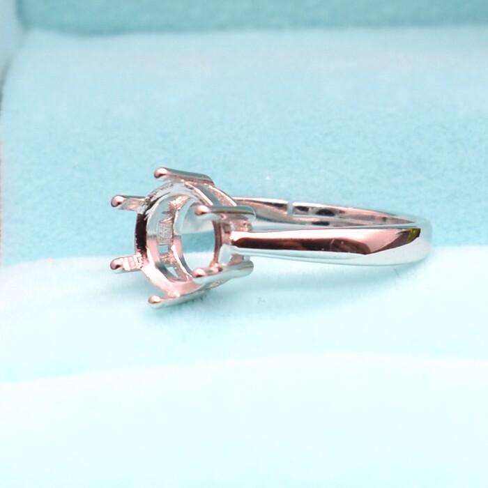 简约圆形纯银戒托女款活圈18k白金戒指空托六爪银托钻戒日韩版diy - 爱未央珠宝Facets Gems