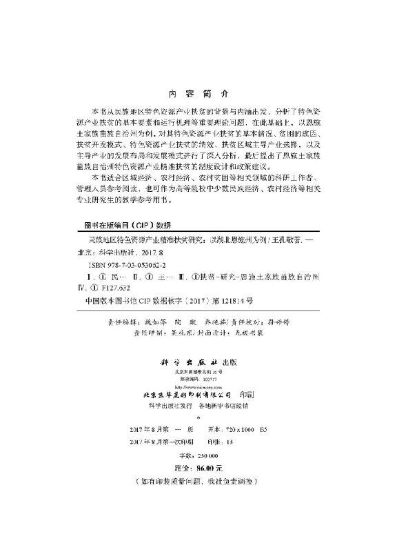 正版现货 民族地区特色资源产业精准扶贫研究——以湖北恩施州为例 王孔敬 科学出版社 - 世纪在线图书专营店