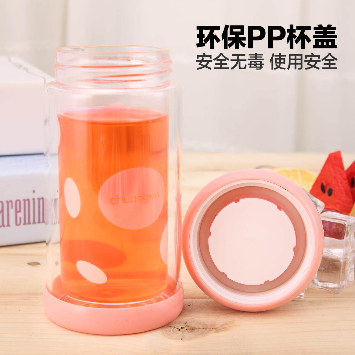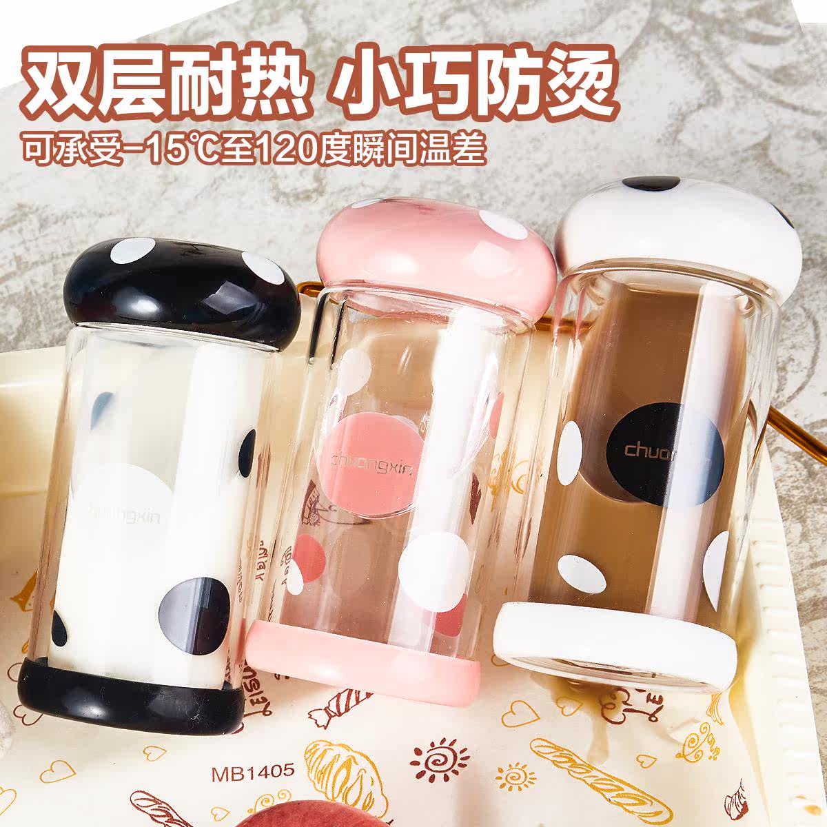 特价小巧便携可爱耐高温防滑双层创意少女士学生办公室果汁玻璃杯