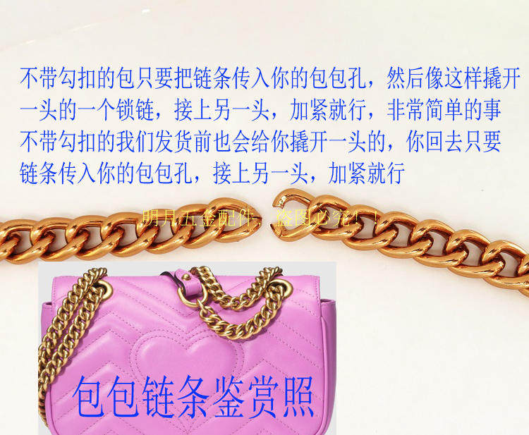 包链条配件勾扣古金色粗口链子金色圆头包带肩带菱格包女包皮具带 - 皮具五金配件店
