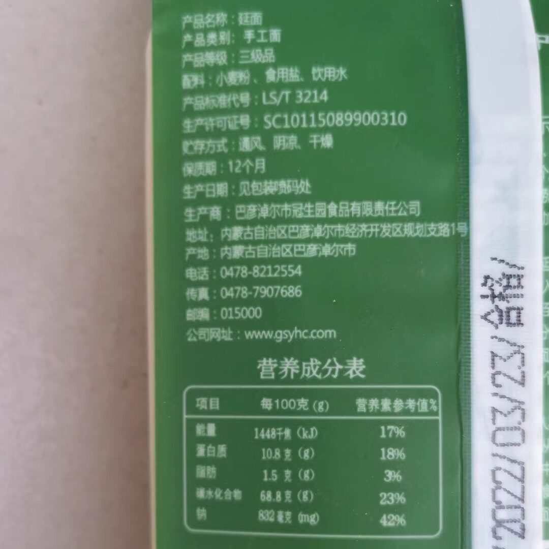 内蒙古河川冠生园延面400g袋装速食方便面非油炸营养食品半成品 - 巴盟特产河套特产