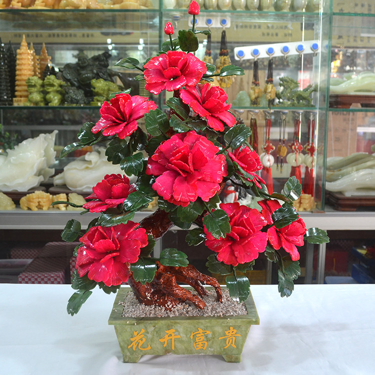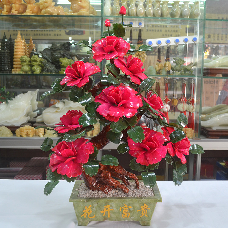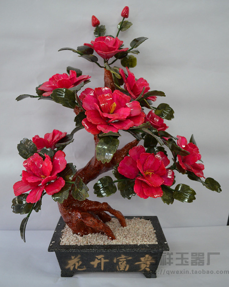 9朵牡丹花玉器玉石摆件家居饰品工艺品现代家居装饰仿真花送礼 - 吉祥玉器工艺厂 家居装饰 盆景 龙船