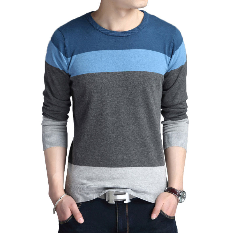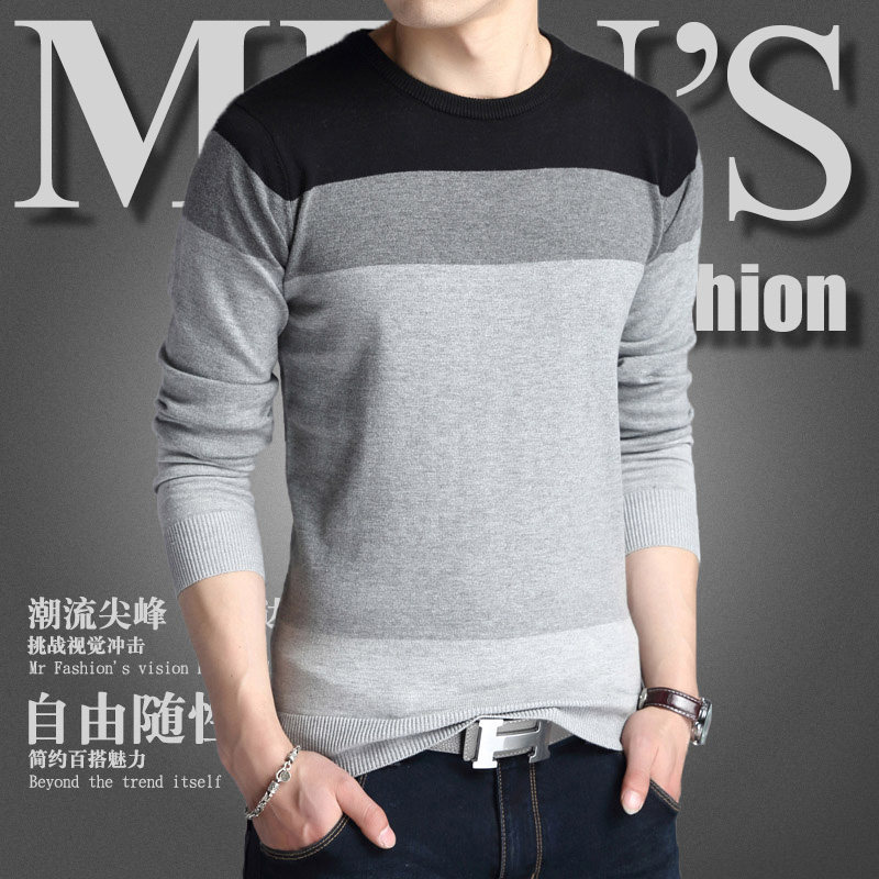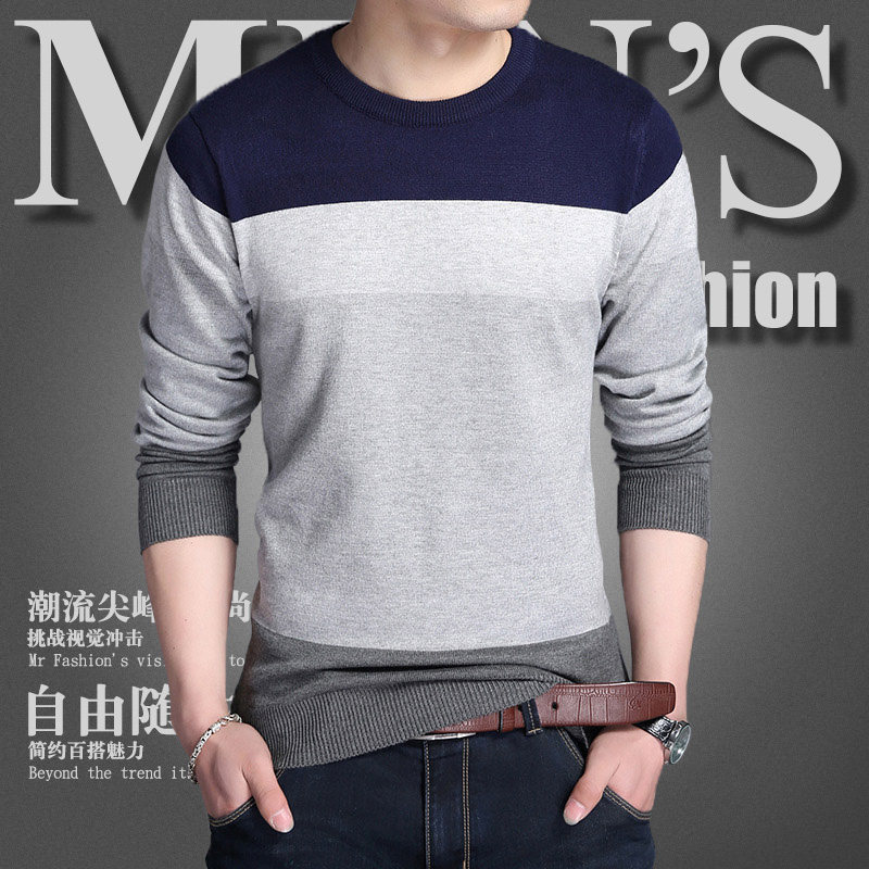 秋季新款薄款青年男士韩版修身长袖针织T恤弹力线衫毛衣圆领大码 - 热卖团购总汇