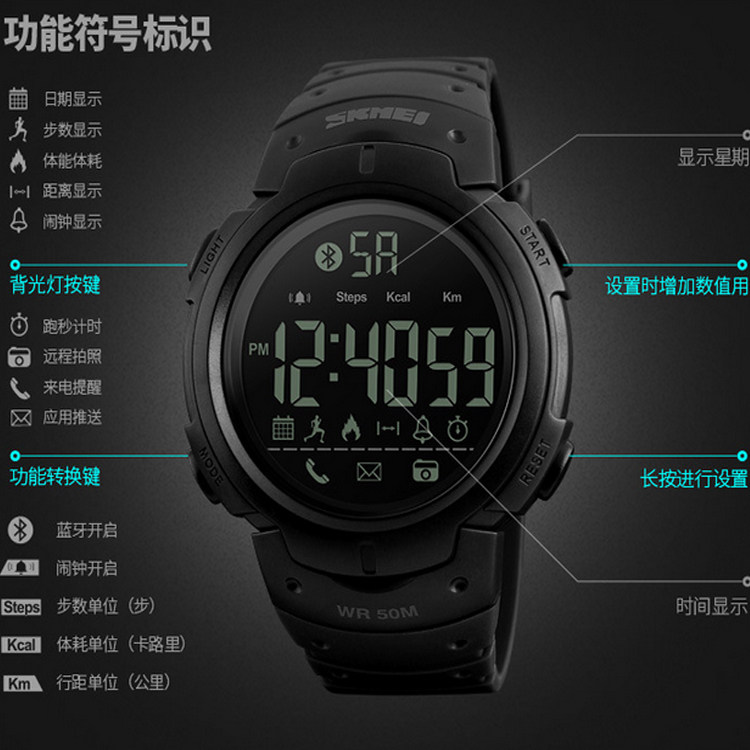智能手表计步野外生存美国大兵运动表蓝牙拍照来电提醒APP电子表 - 瑞士名表奢侈专柜
