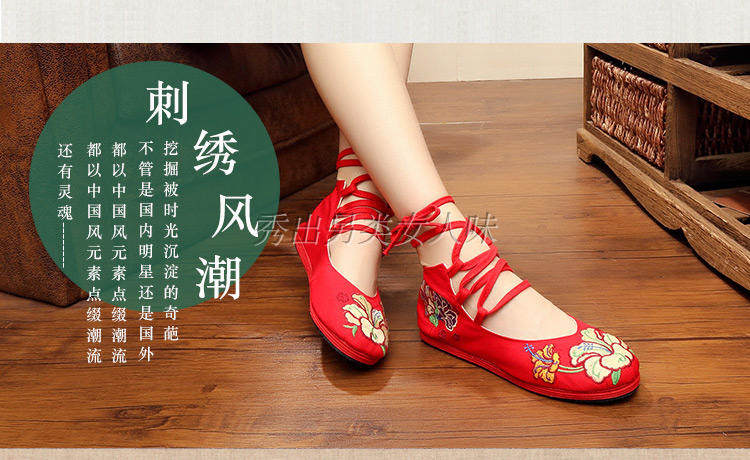 老北京布鞋夏 民族风千层底绣花鞋 绑带女单鞋布鞋牡丹绣花鞋平跟 - 秀出另类女人味