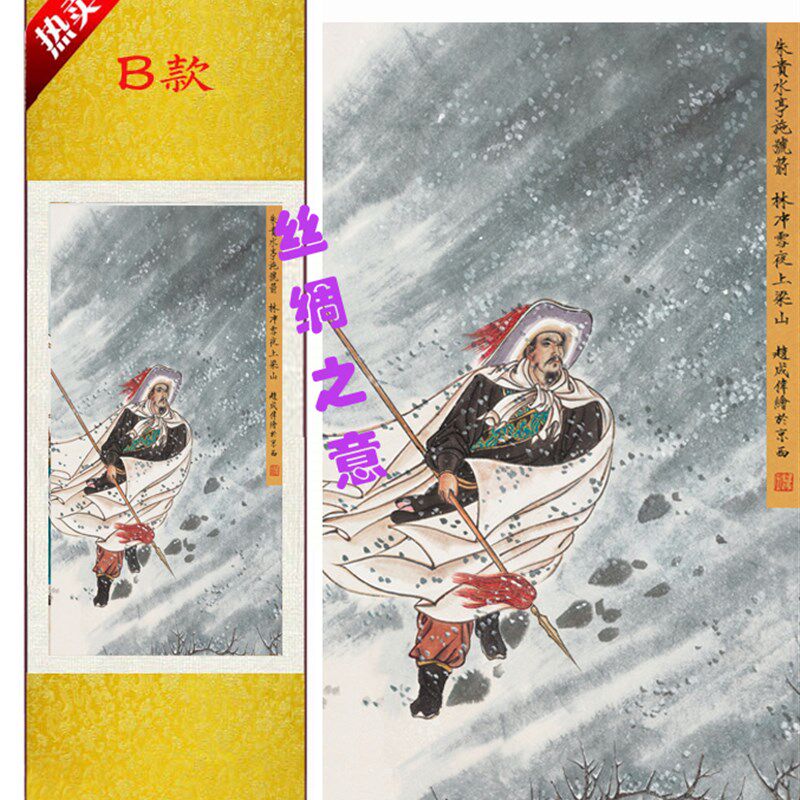 水浒传主题挂画朱贵水亭施号箭林冲雪夜上梁山装饰丝绸卷轴画 - 锻铁轩商城的小店20