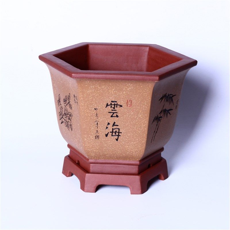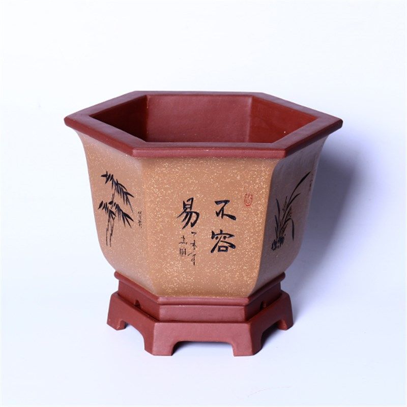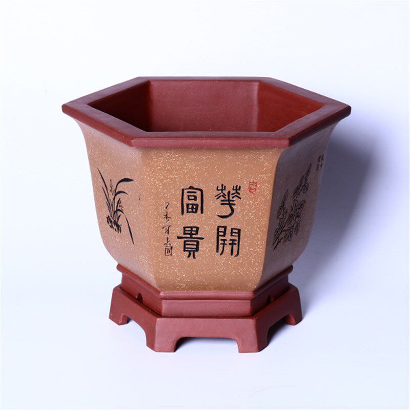 您的位置:女淘日记  >   >  君子兰花盆中国风兰花专用盆精品客厅透气紫砂盆六方兰花盆带底座