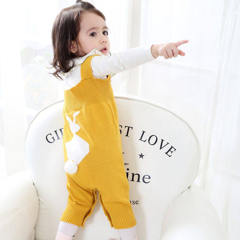 秋冬婴儿针织背带裤0-3岁宝宝毛线兔子可开档大PP裤纯棉裤 - CM纯棉宝宝