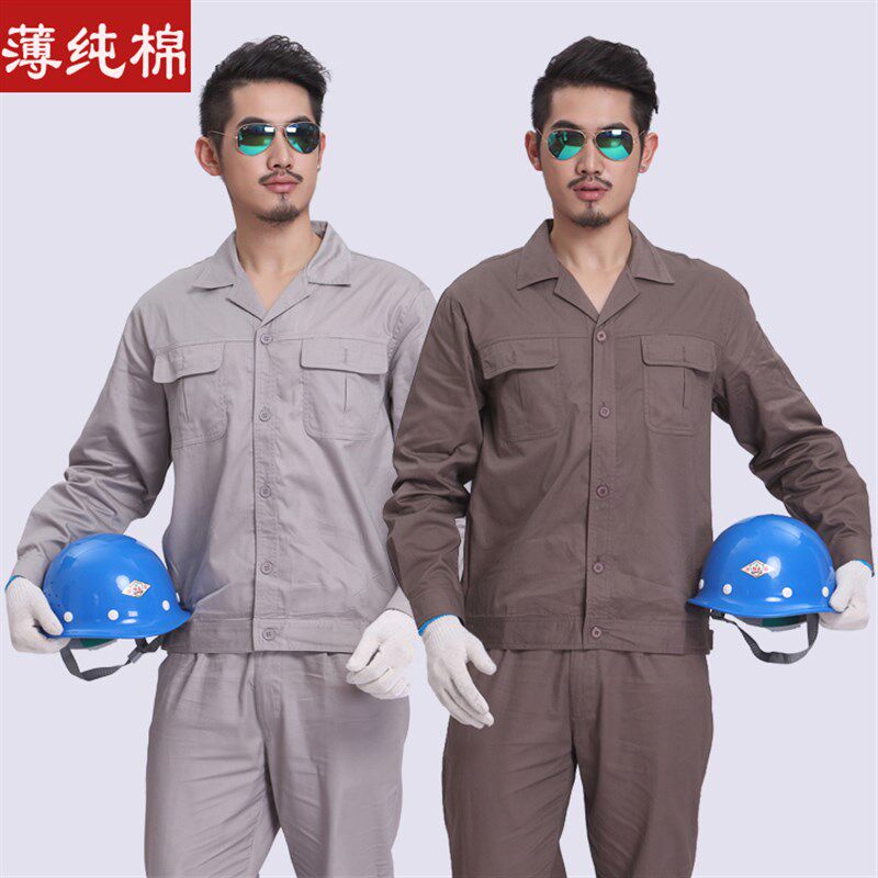薄款纯棉工作服夏季长袖机修工作服套装男全棉汽修工程服短工厂服 - 安隆铺商城