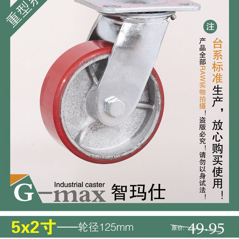 智玛仕5寸重型内销装滚柱轴承铁芯PU静音耐磨万向轮(轮径125mm) - 金铁轩商城的小店6