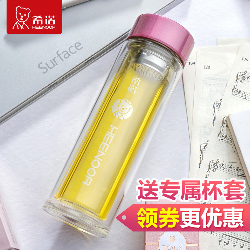 希诺女士双层玻璃杯水杯便携水晶杯隔热办公茶杯过滤杯子XN-6505 - 希诺水杯直销商城