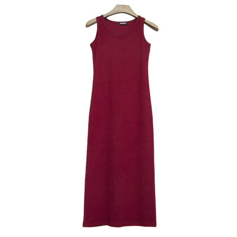 韩系春夏纯色纯棉无袖连衣裙女包臀长裙修身吊带打底背心裙夏一步 - 翠璧阁商城