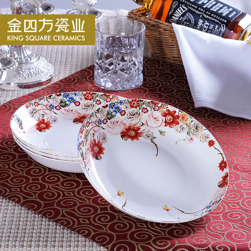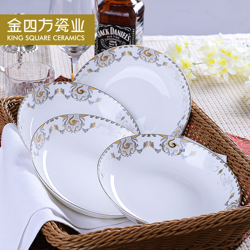 金四方骨瓷盘子创意陶瓷西餐盘7.5寸饭盘欧式汤盘深盘菜盘4件套装 - tb5693213519的小店37