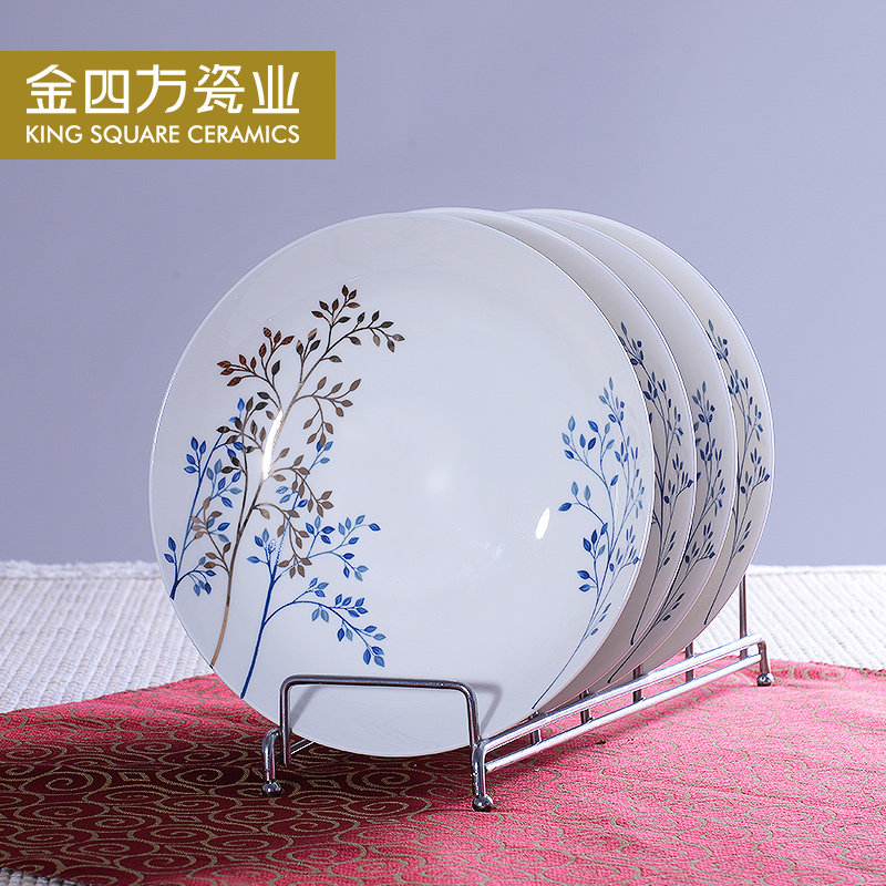 金四方骨瓷盘子创意陶瓷西餐盘7.5寸饭盘欧式汤盘深盘菜盘4件套装