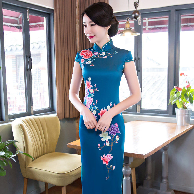 您的位置:女淘日记  >  女装  >  新款夏秋装 改良修身显瘦真丝旗袍中长款 优雅少女演出连衣裙大码