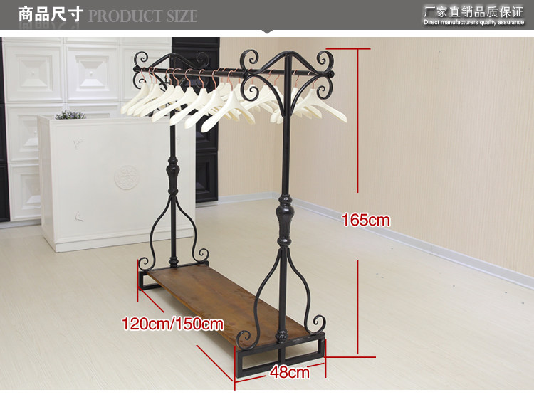 复古实木铁艺服装展示架落地式双杆挂衣架男女装衣架鞋包货架包邮 - 亿达铁艺家居馆