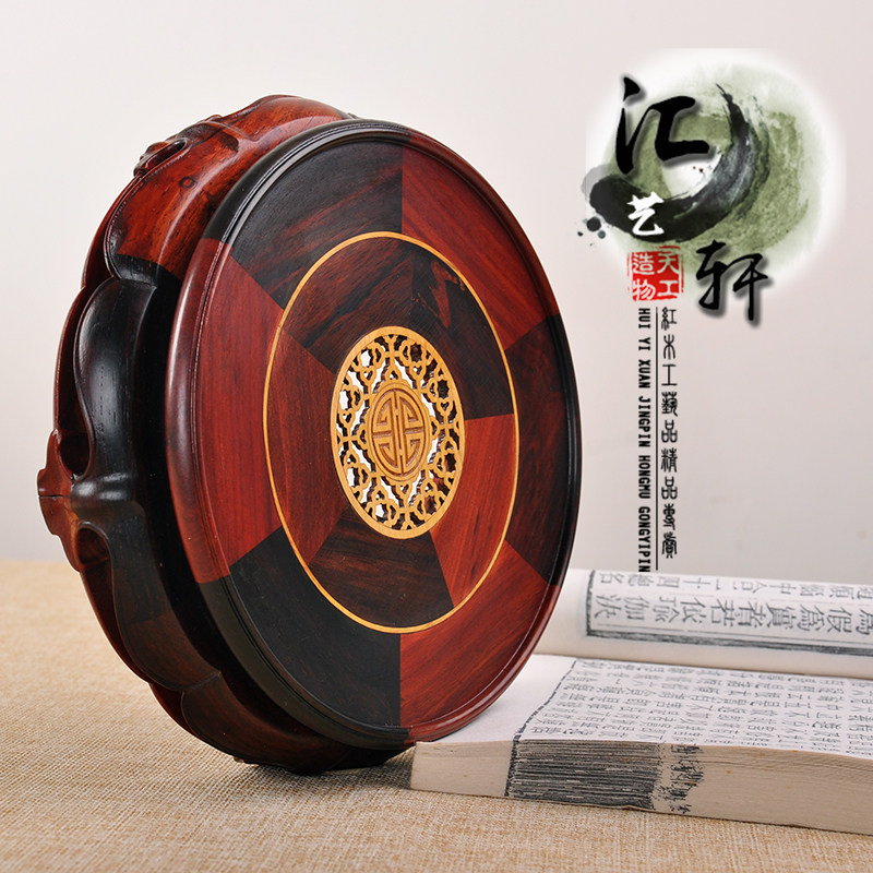 红木大红酸枝镶黄杨莲花底座茶壶香炉奇石玉器花瓶盆景摆件木底座 - 汇艺轩红木底座总店