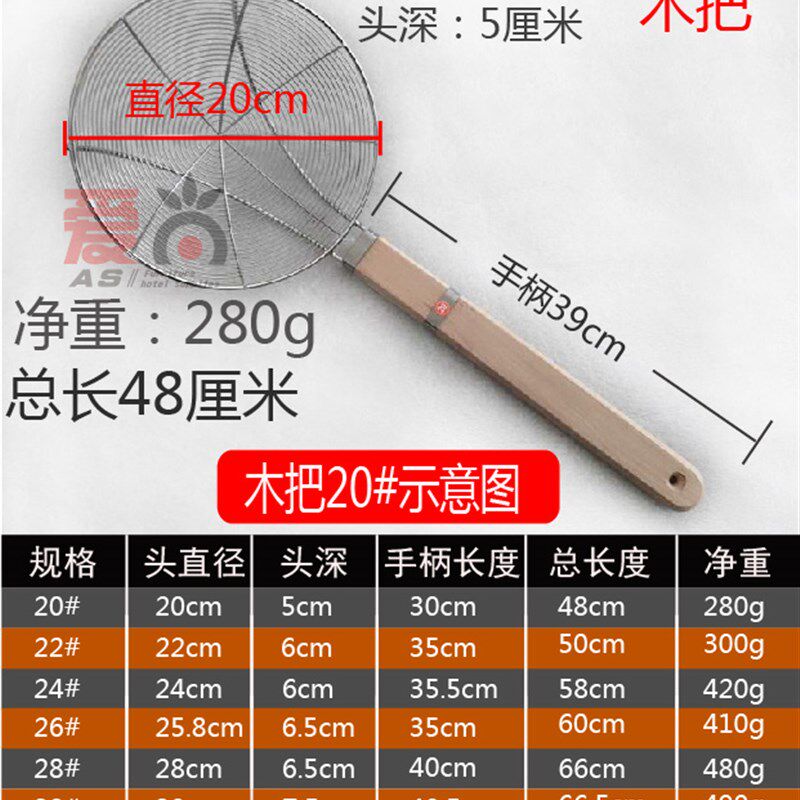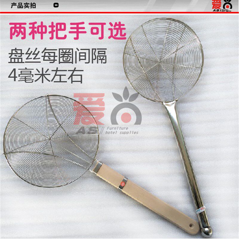 不锈漏勺盘丝大号捞面勺钢把隔油过滤网笊篱钢丝篱网漏粉篱油炸网 - 瑾泰月商铺的小店88