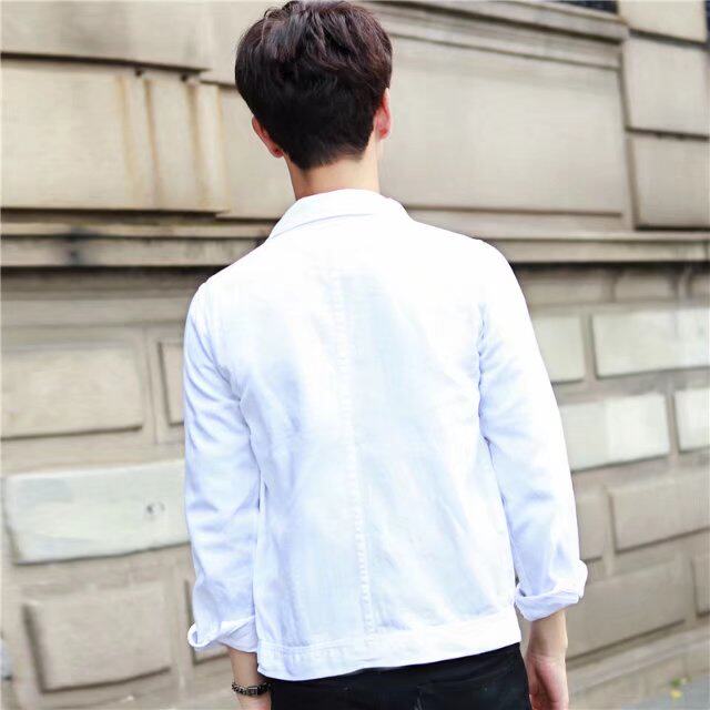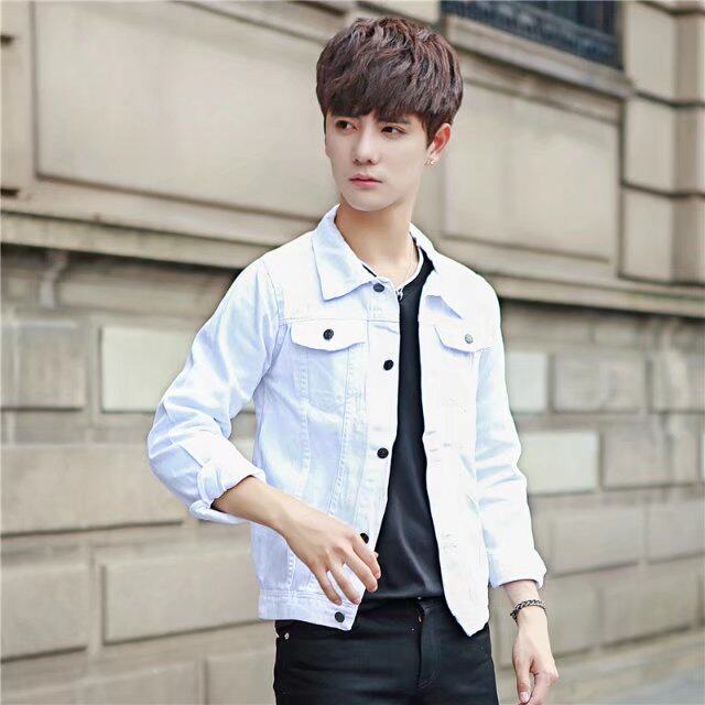 牛仔夹克男2023春秋装新款男士白色韩版外套工装茄克上衣青年潮 - 嘉之派品质男装