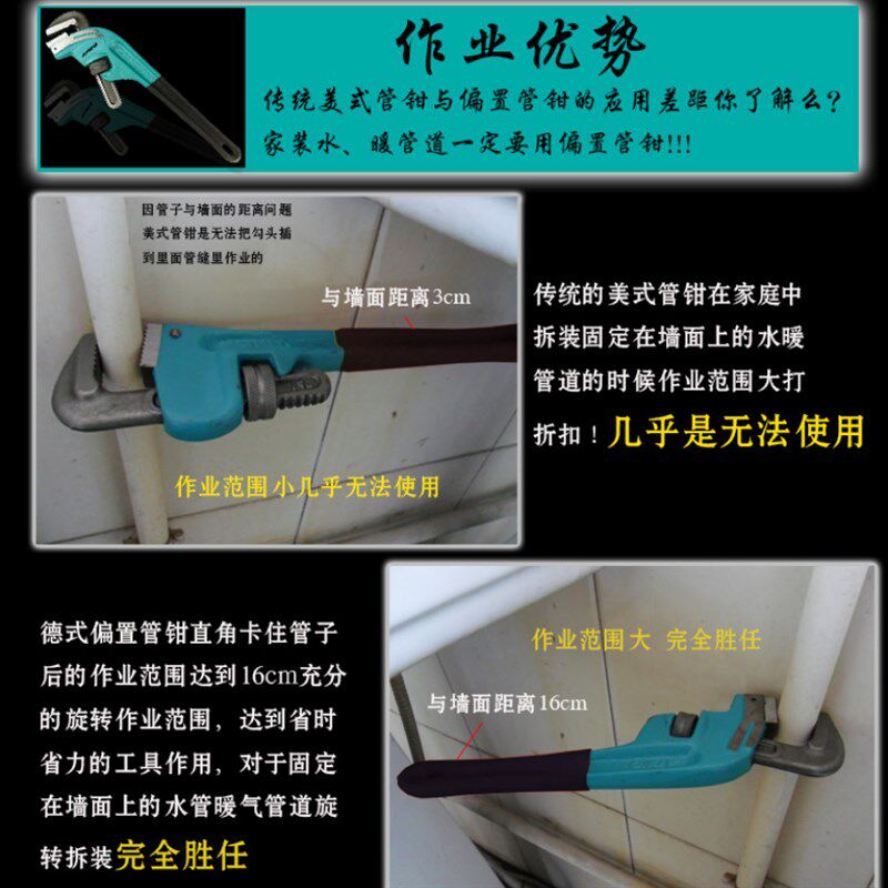 多功能快速水管钳偏置管子钳 斜头管钳子 水泵水暖工具扳手 - 著倒苑商城的小店7