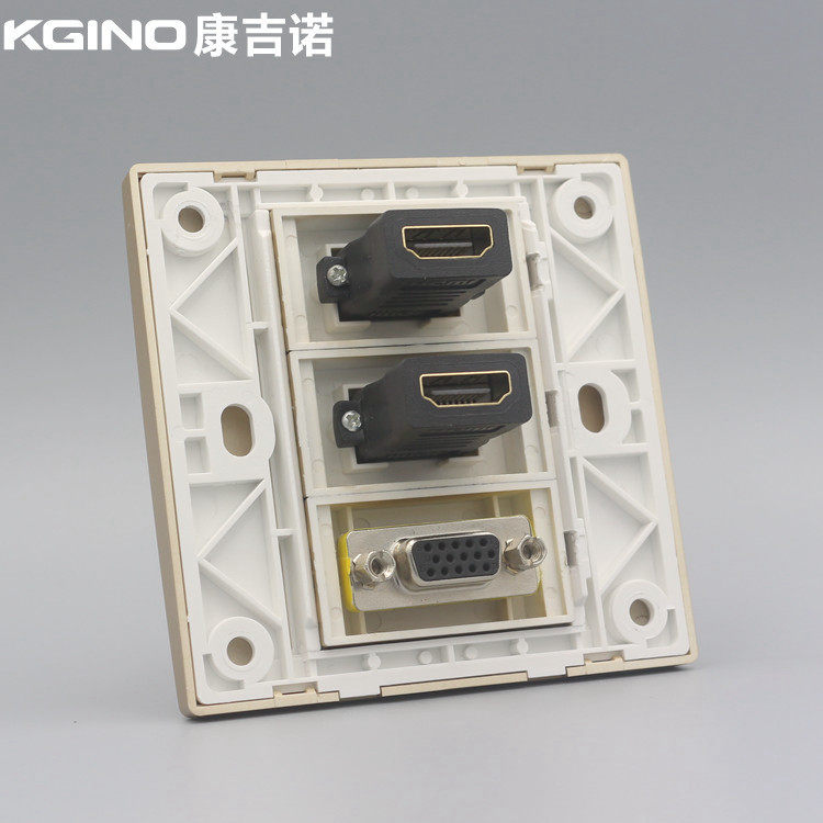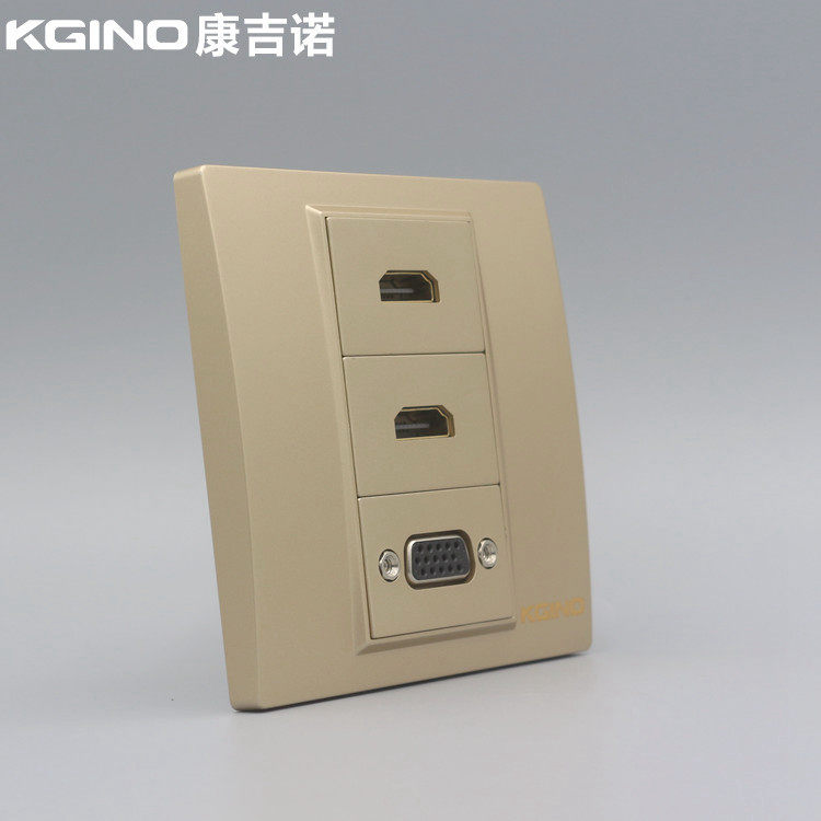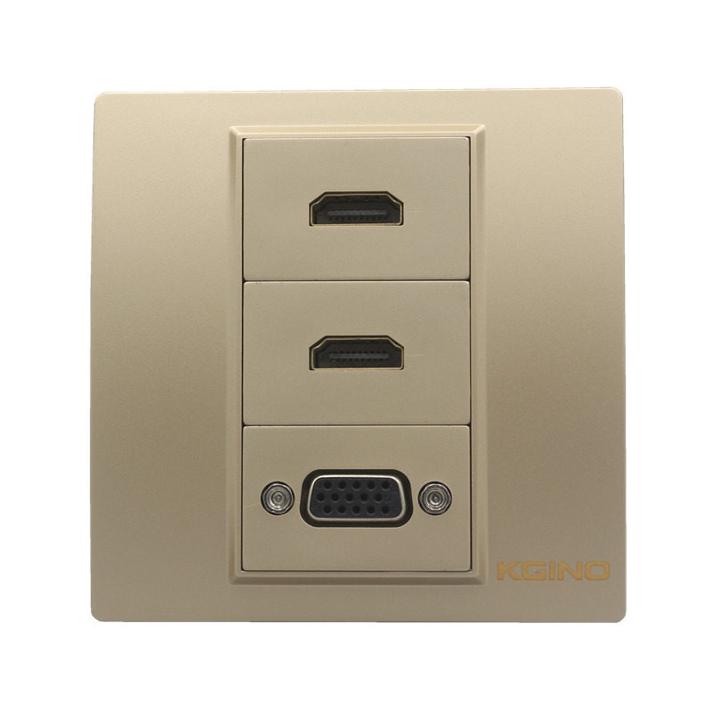 香槟金86型VGA高清加双口2.0版HDMI直插金色多媒体投影仪插座面板 - 同浩智能中心