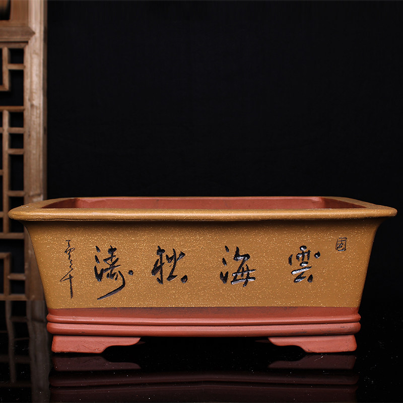 宜兴紫砂花盆特大长方形盆景盆假山造景盆室内桌面阳台盆景种植盆 - 美景收藏铺