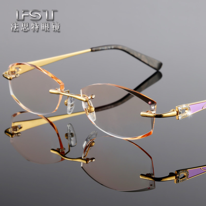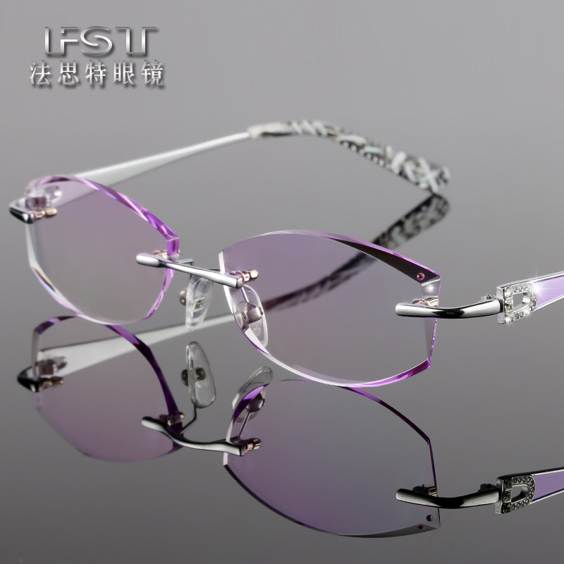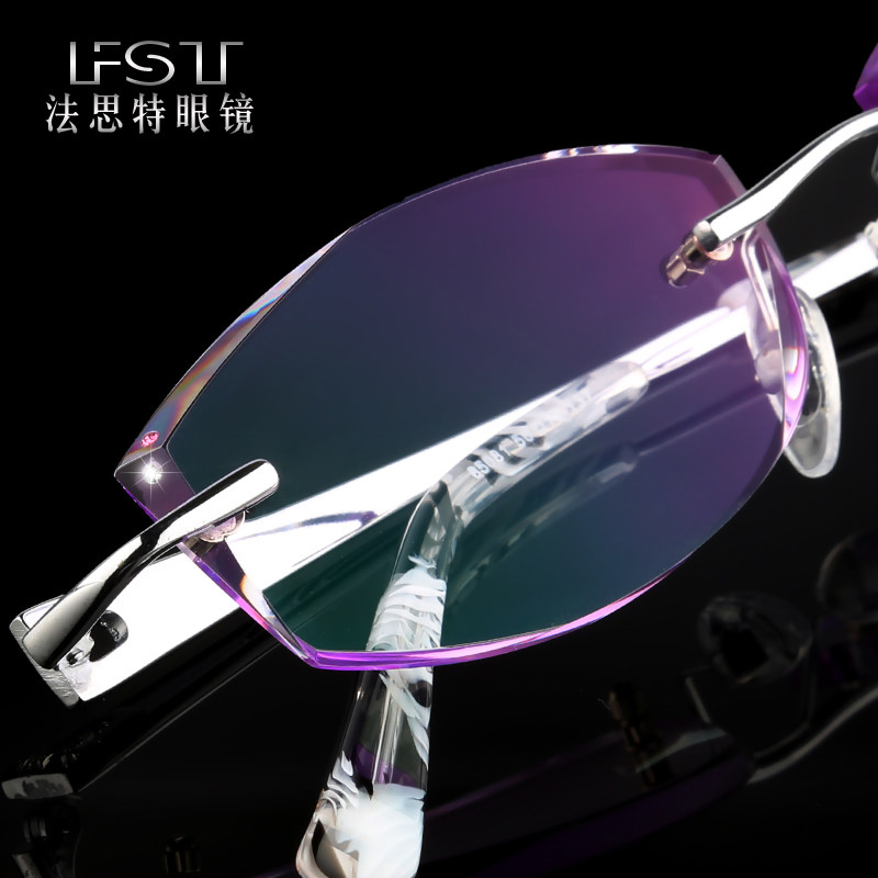 韩国镶钻石切边眼镜架女纯钛无框眼镜框渐变色超轻潮成品近视眼镜 - 法思特眼镜企业店
