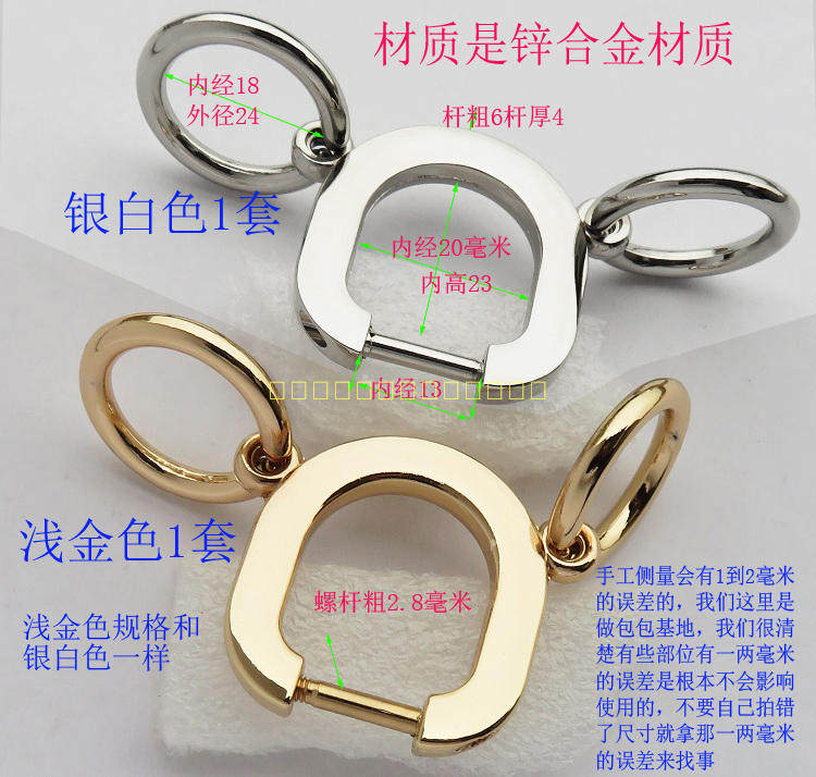 女包双圆提手扣子螺丝D形耳仔兔子可拆卸半圆圈银白浅金手把包带 - 皮具五金配件店