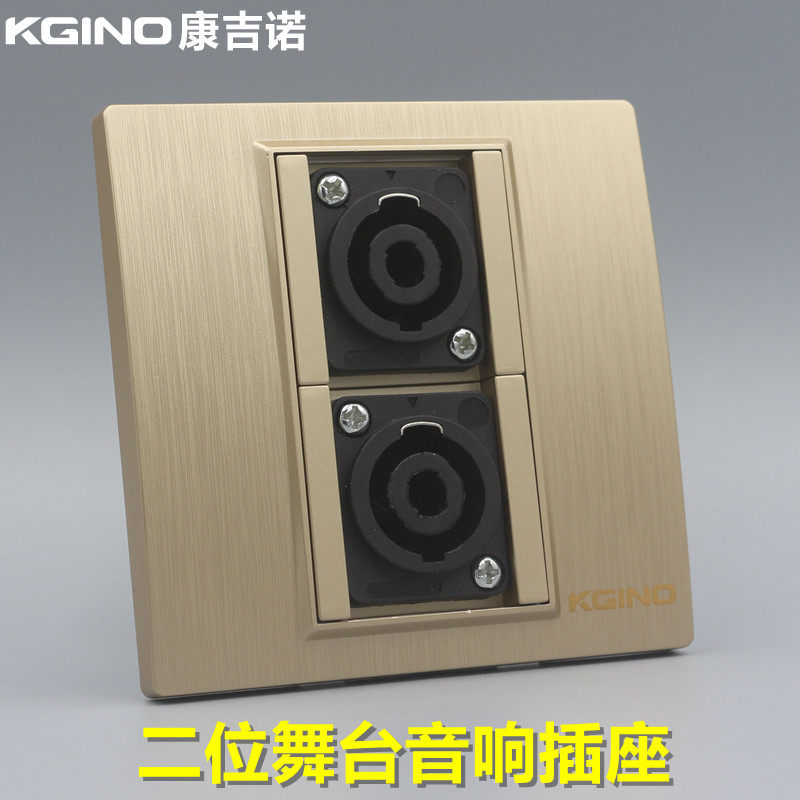 拉丝香槟金86型二位大功率舞台音响插座金色四芯音箱欧姆卡农面板 - 同浩智能中心