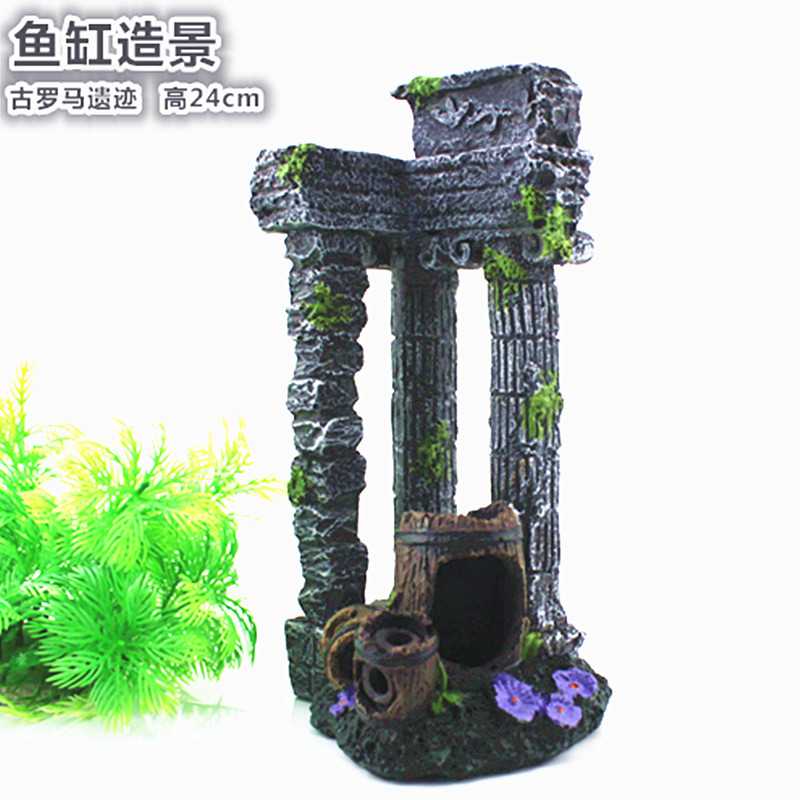 鱼缸造景亚特兰蒂斯仿古装饰水族造景古希腊海底景观桶型罗马立柱 - 艳香居水族