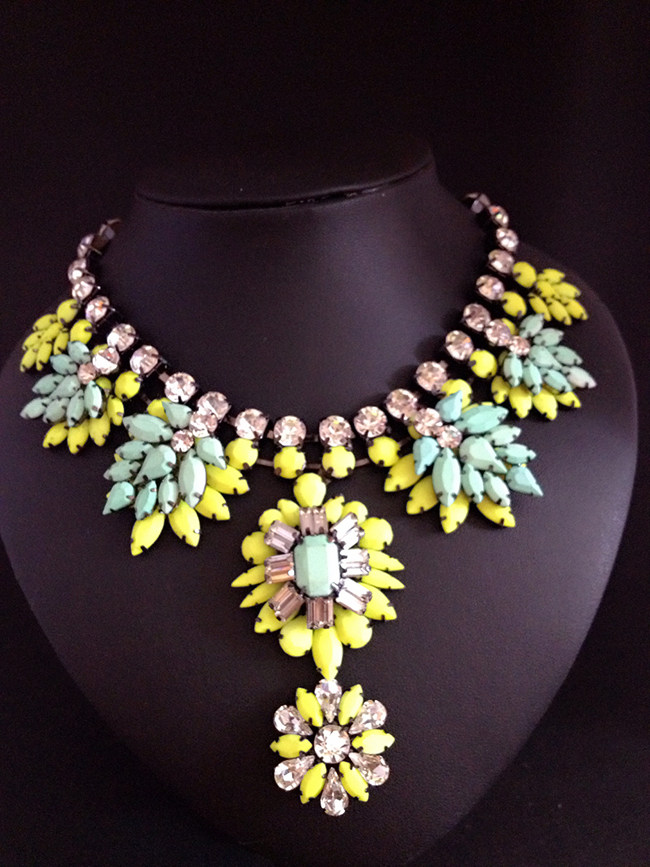 欧美夸张装饰品 复古宝石花朵短项链 时尚名媛气质锁骨链女配饰 - 金城饰界 时尚馆