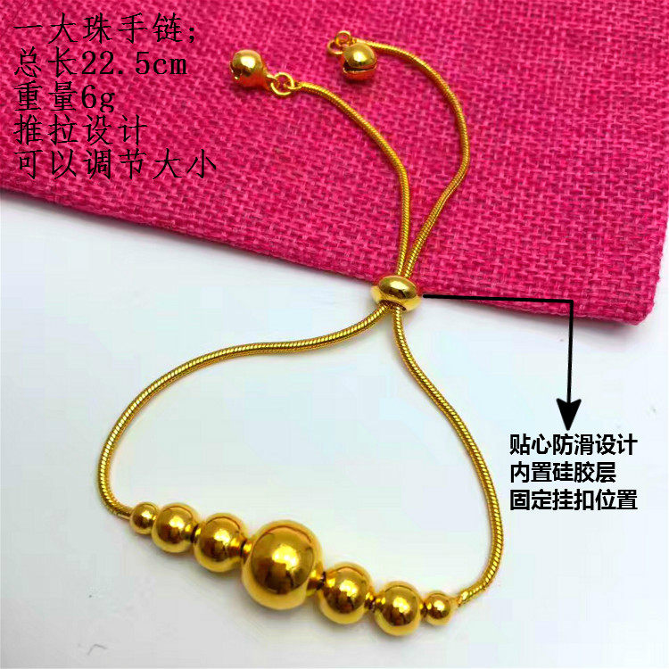 不掉色欧币仿金女士手链 黄铜镀金沙金街拍手镯排女款 转运珠手链 - 平价沙金饰品批发