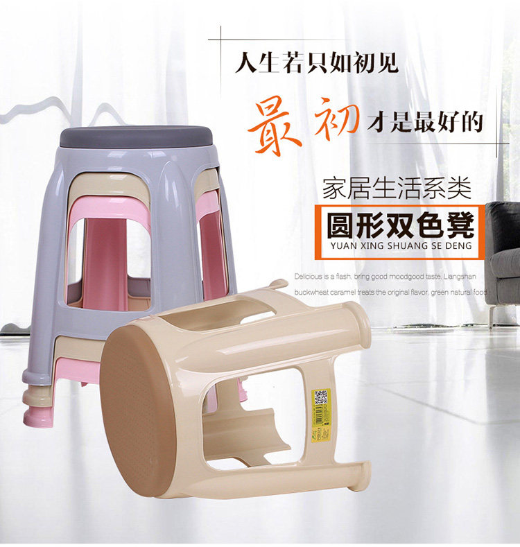 圆形塑料凳子 家居成人双色椅子 创意板凳 杌子 凳子 塑料凳 凳椅 - 润发源百货
