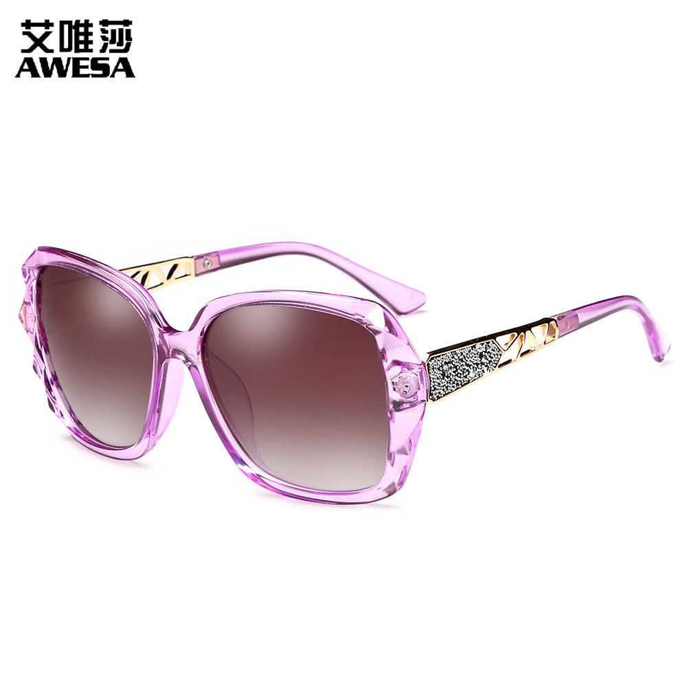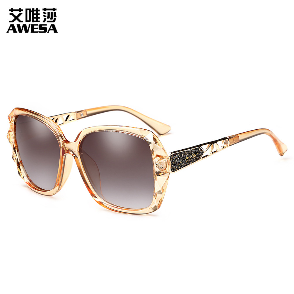 浅色太阳镜女大脸显瘦偏光墨镜大框防紫外线开车眼镜圆脸防晒百搭 - 艾唯莎墨镜