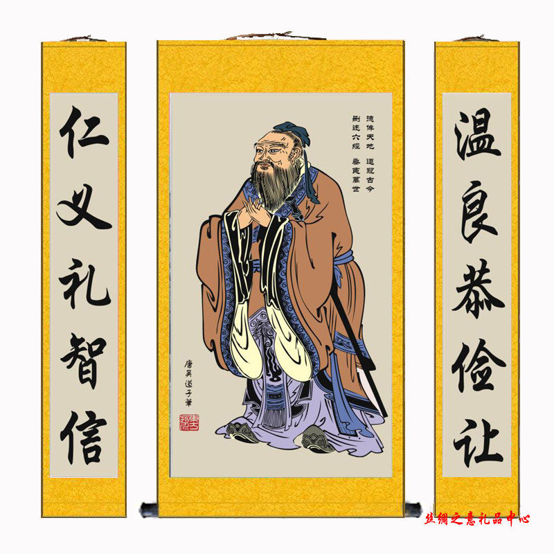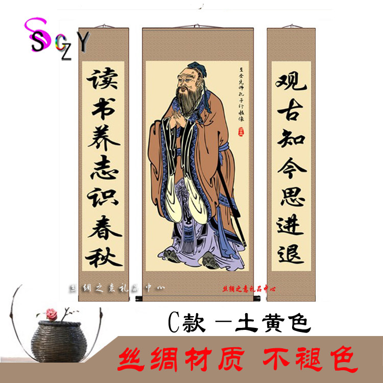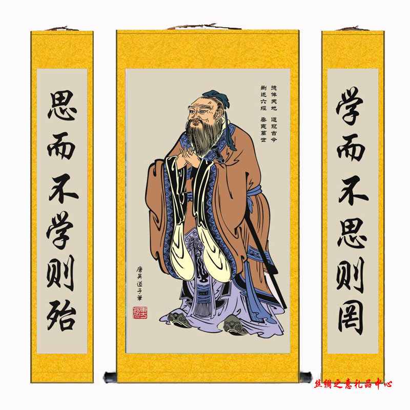学堂孔子像挂画孔子画像挂图孔夫子挂像教室客厅中堂丝绸画装饰画 - 丝绸之意礼品中心