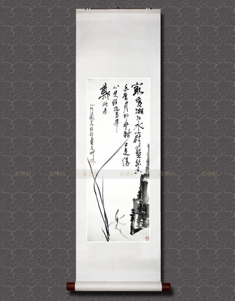 纯手绘国画仿名人字画名家书画潘天寿书房竖条幅水墨兰花石头挂画 - 寅德轩书画手绘