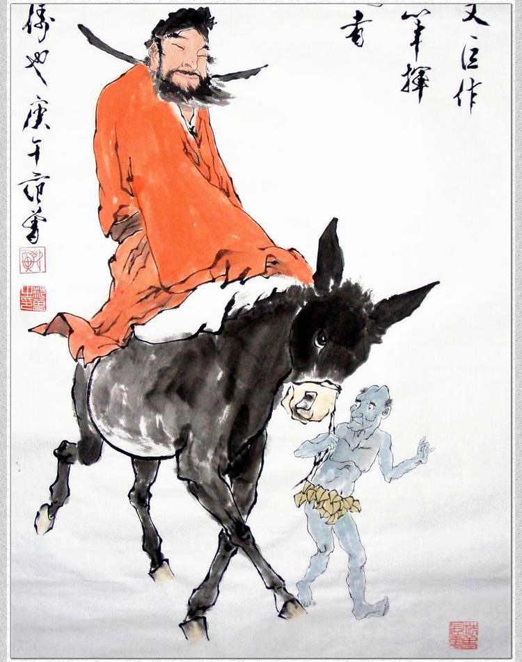 您的位置:女淘日记  >  居家  >  纯手绘国画仿名人字画范曾玄关条幅红衣钟馗骑驴惬意小鬼人物挂画