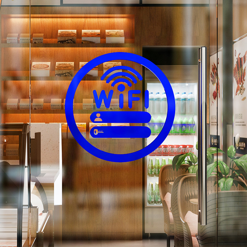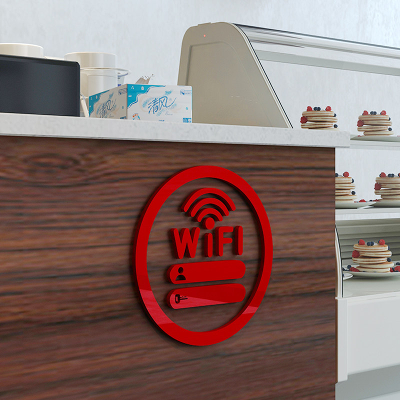 wifi提示牌图标3d立体墙壁贴纸咖啡店布置甜品奶茶收银吧台装饰画