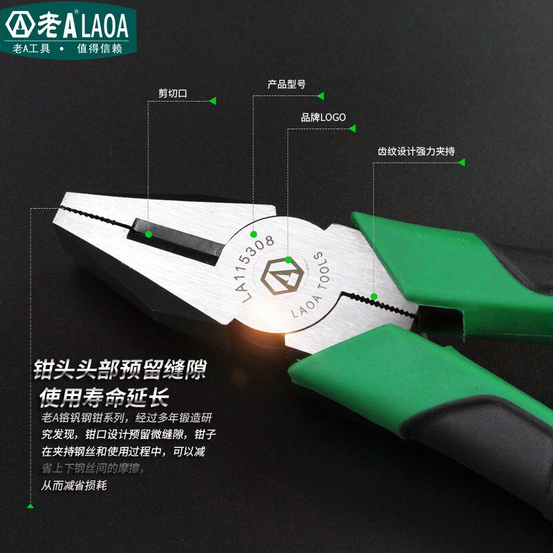老A老虎钳钢丝钳斜嘴钳斜口钳尖嘴钳钓鱼钳多功能电工钳子6寸8寸 - 轩饮露商城的小店5