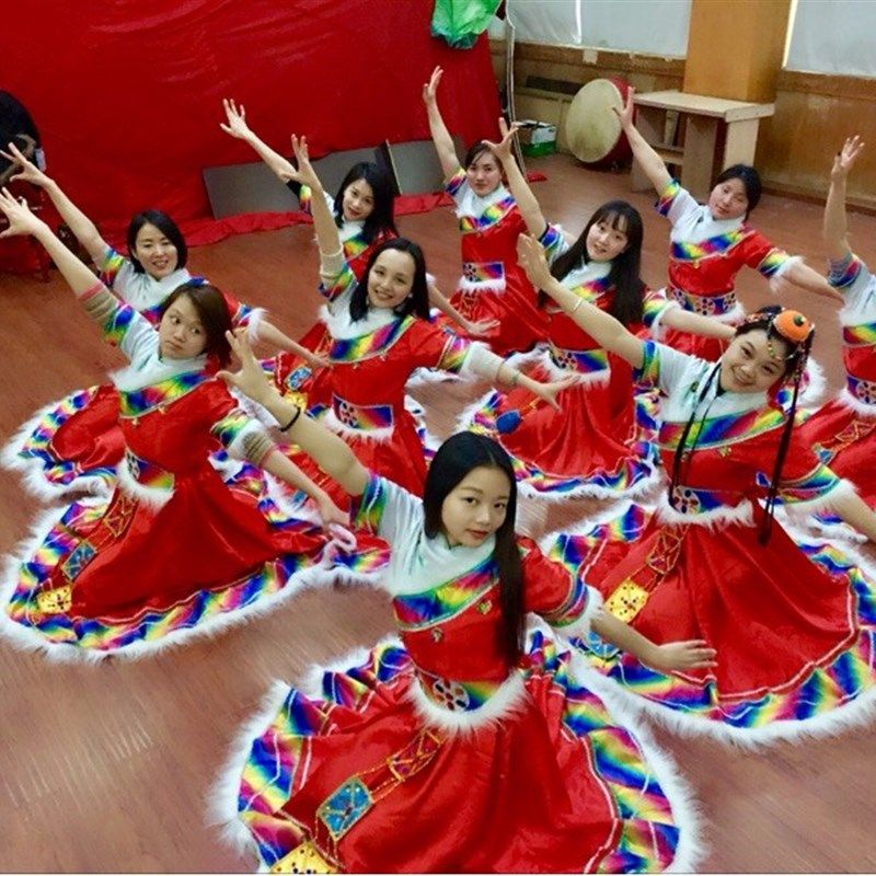 水袖长袖藏族舞蹈服n装女装演出长裙儿童服饰民族舞台表演藏袍 - 迅诚批发工厂